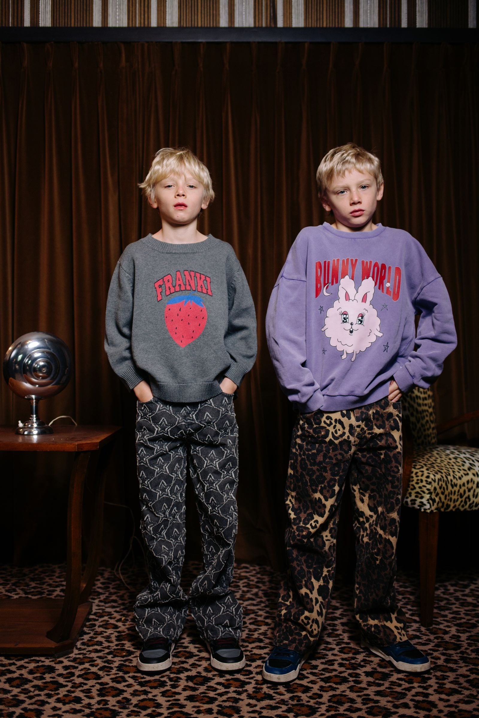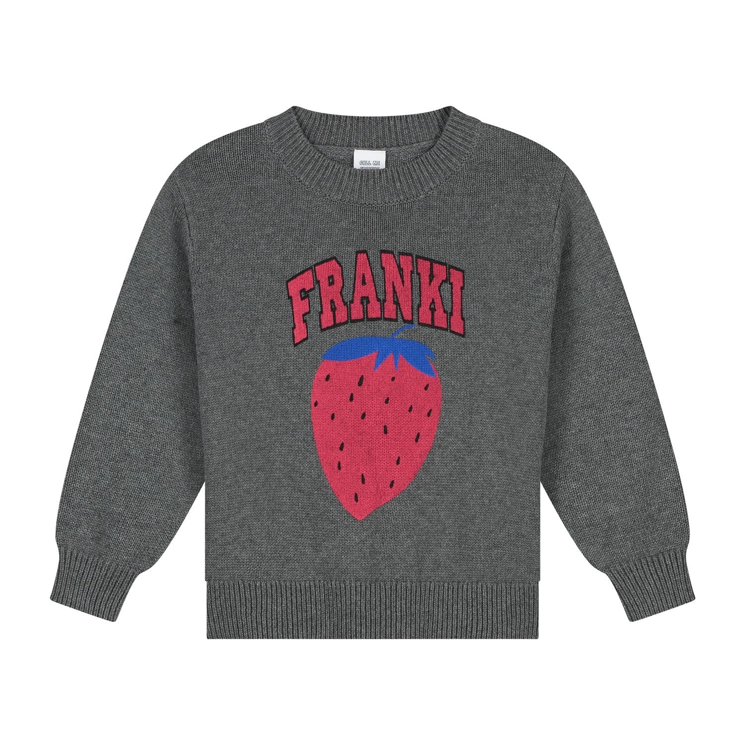 This cozy knit brings a fruity twist with its bold strawberry graphic and playful “FRANKIE” lettering. A fun everyday piece with a relaxed fit, perfect for layering and adding a pop of sweetness to any outfit.