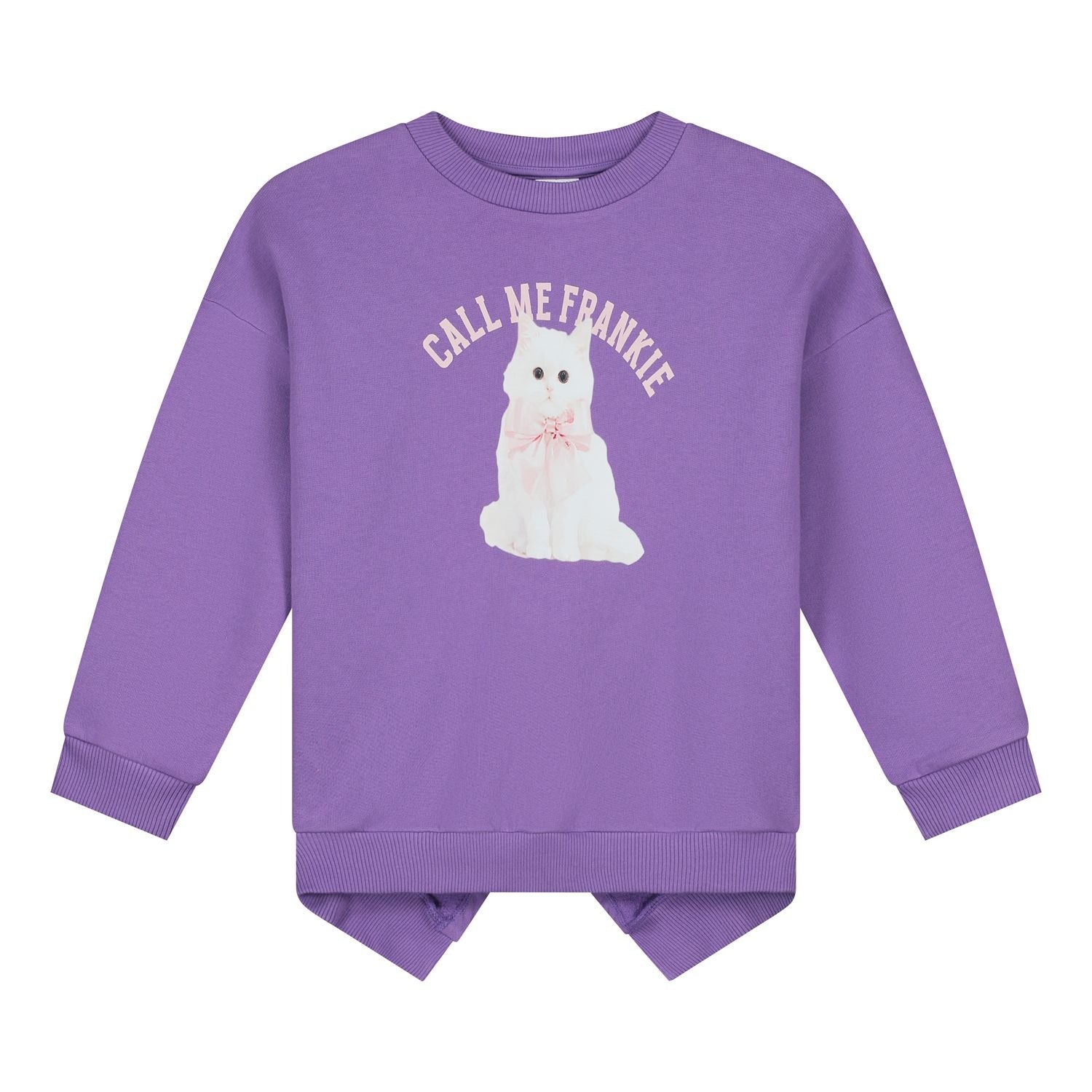 This playful purple sweater features a sweet fluffy cat print with a pink bow. A cozy essential with a fun twist. Perfect for little cat lovers with big style.